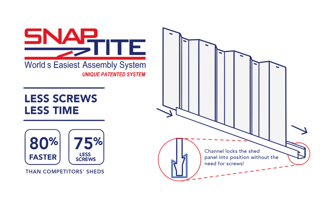 SNAPTiTE is an innovative patented design that dramatically reduces the time and effort required to assemble the range of Absco Sheds.
